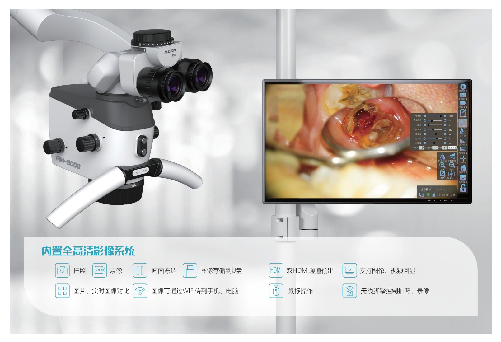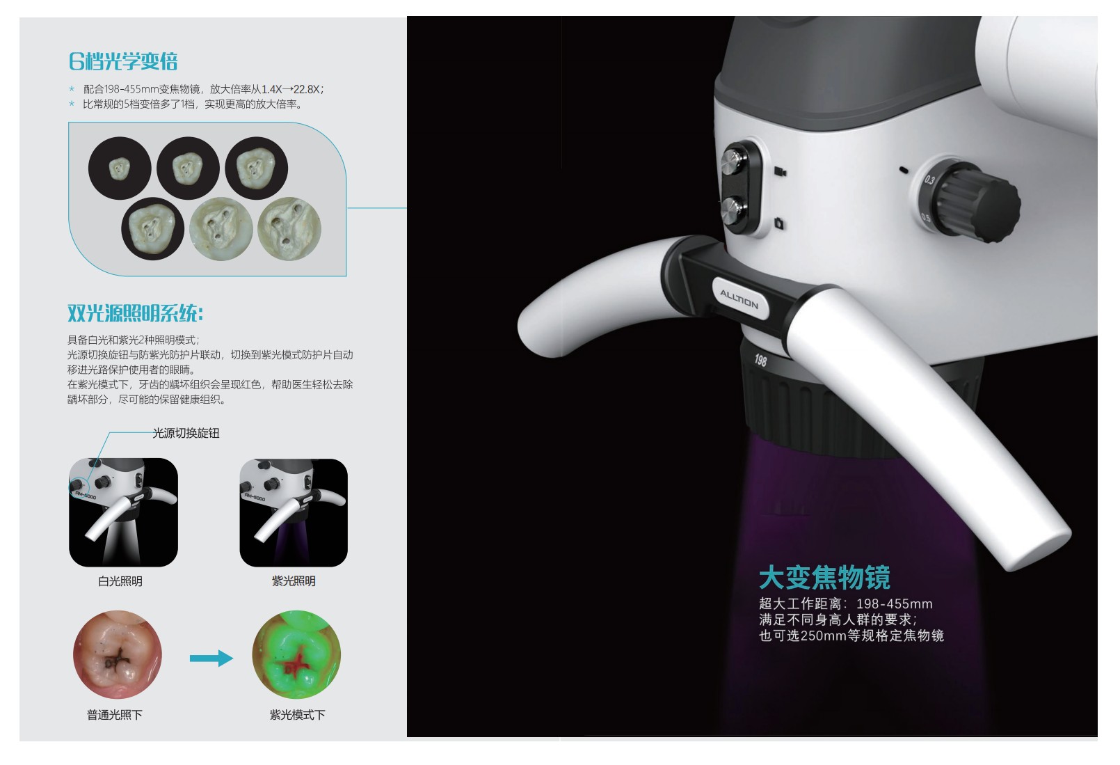 品牌ALLTION放大倍率系统放大倍率为1.4-22.8X型号AM-5000目镜0-180°变角旋钮式瞳距调节双目镜筒是否可定制是大变焦物镜198-455mm变焦物镜颜色黑/白照明光源LED,≥50000小时附加功能景深增强双光源照明影像系统内置4K影像系统